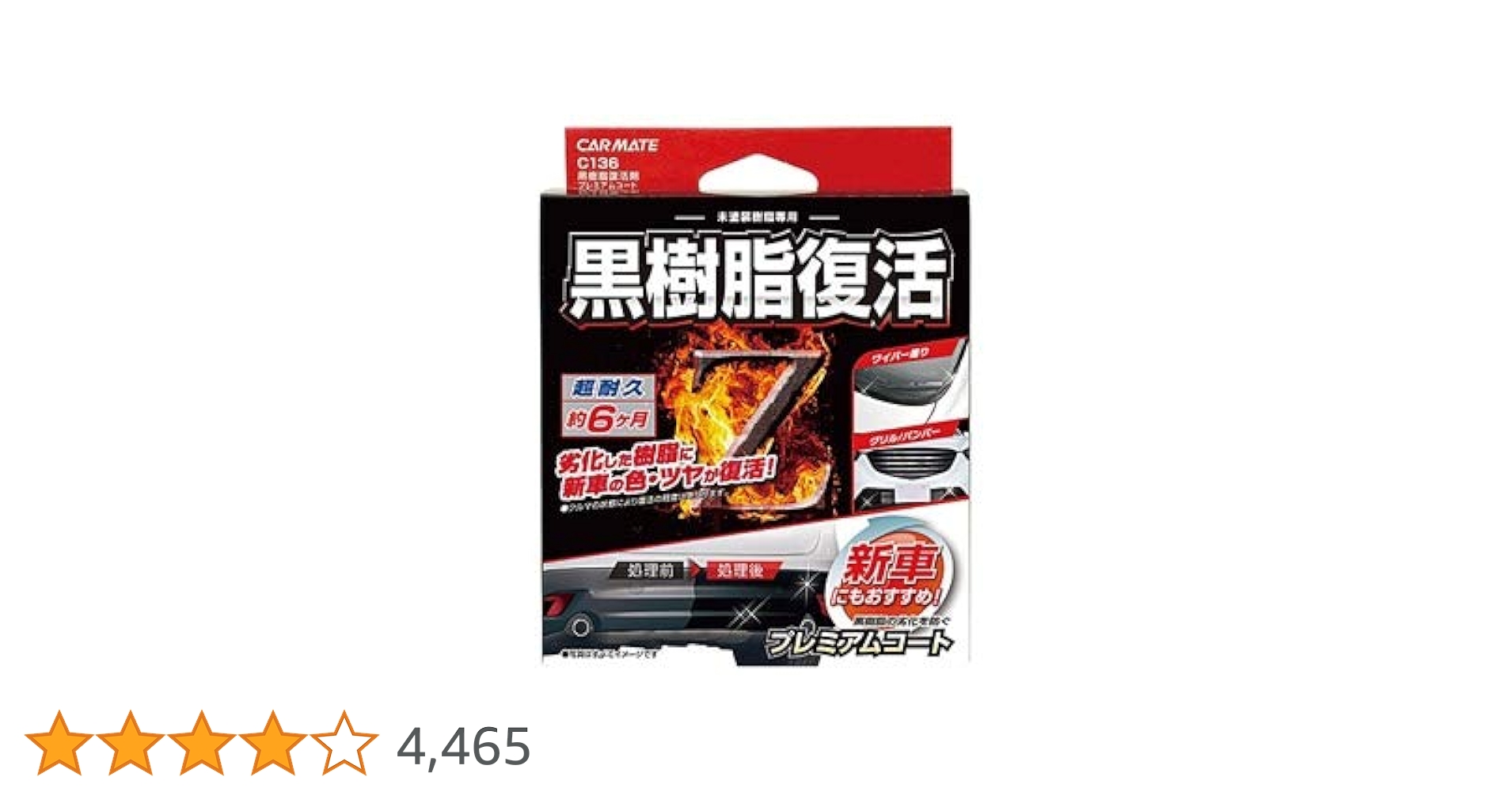 黒樹脂復活剤 6ヶ月耐久 カーメイト C136 黒樹脂復活剤 プレミアムコート 樹脂 洗車 お手入れ用品 経年劣化 白くなったパーツの色とツヤを復活 樹脂 白化 復活 自動車の未塗装プラスティック部品は年数が経つと紫外線等の影響で白化して...